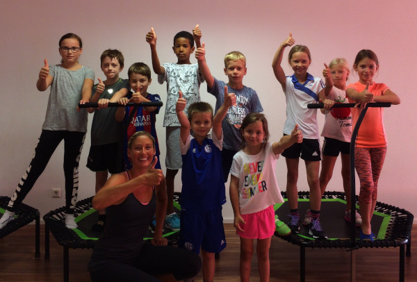Die letzten 10-15 min haben die Teens bei Kraftübungen auf dem Trampolin noch einmal alles gegeben.